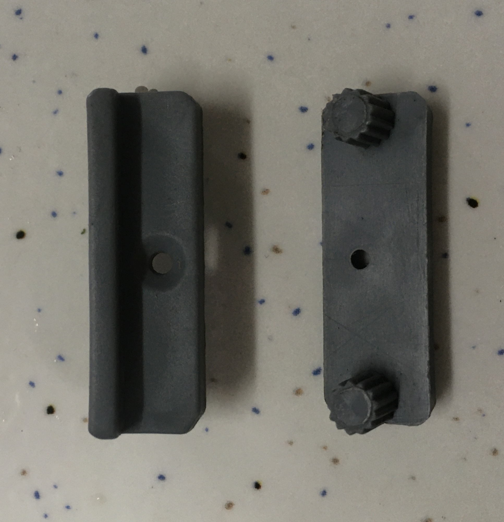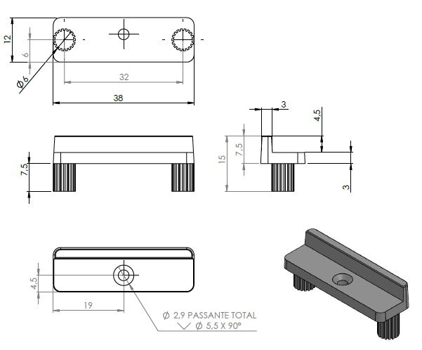 Batente com dois pinos para ser encaixado no fundo da gaveta e limitar o seu curso, bem como para absorver parte do impacto no ato do fechamento. É manufaturado em polipropileno (PP), o que garante resistência e tenacidade. Possui 37 mm de comprimento.