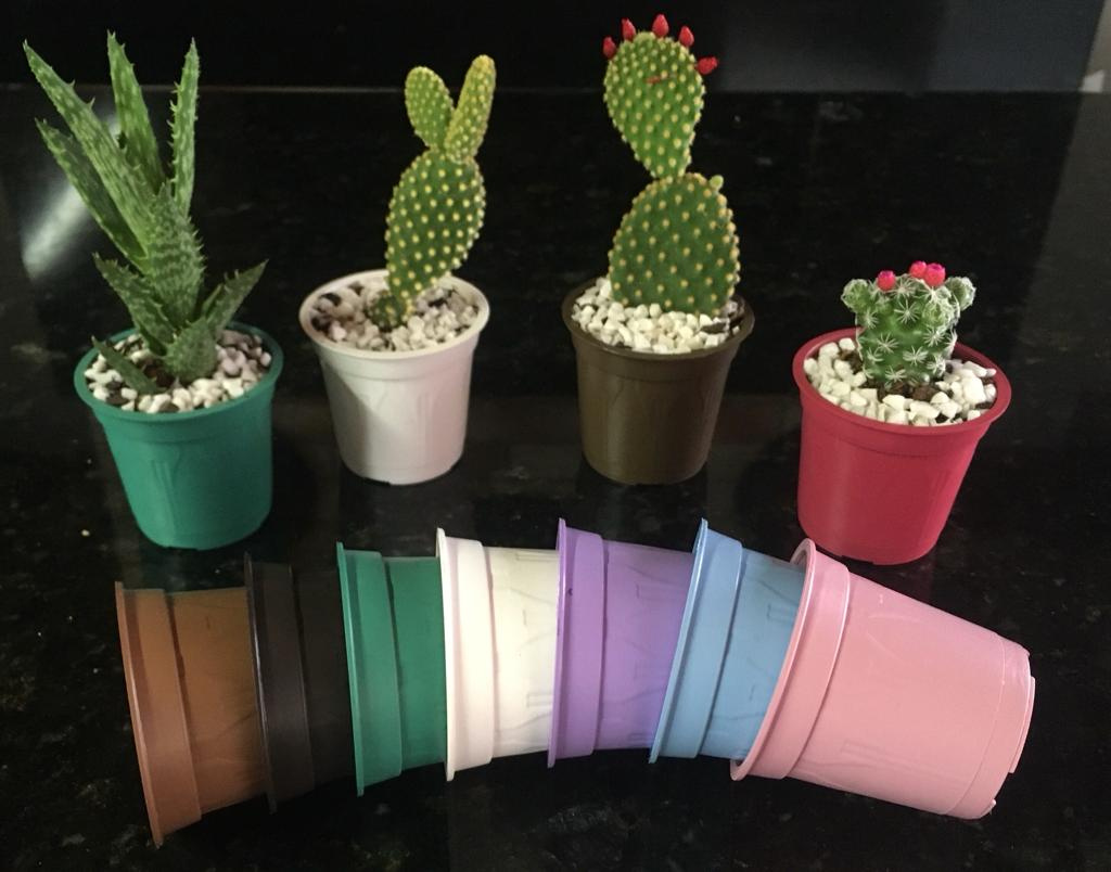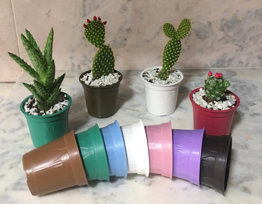 Vaso plástico confeccionado em polipropileno (PP), o que garante resistência e tenacidade, bem como resistência à umidade. Tem diâmetro máximo de 57 mm, diâmetro mínimo de 43 mm e altura de 50mm, de modo que é perfeito para o plantio de mudas, e plantas de pequeno porte, a exemplo de temperos e especiarias próprias para o cultivo em apartamento e outras áreas confinadas. A matiz de cores é enorme, de tal forma que se torna um recurso para agregar estilo e personalidade à decoração. Capacidade 80ml.