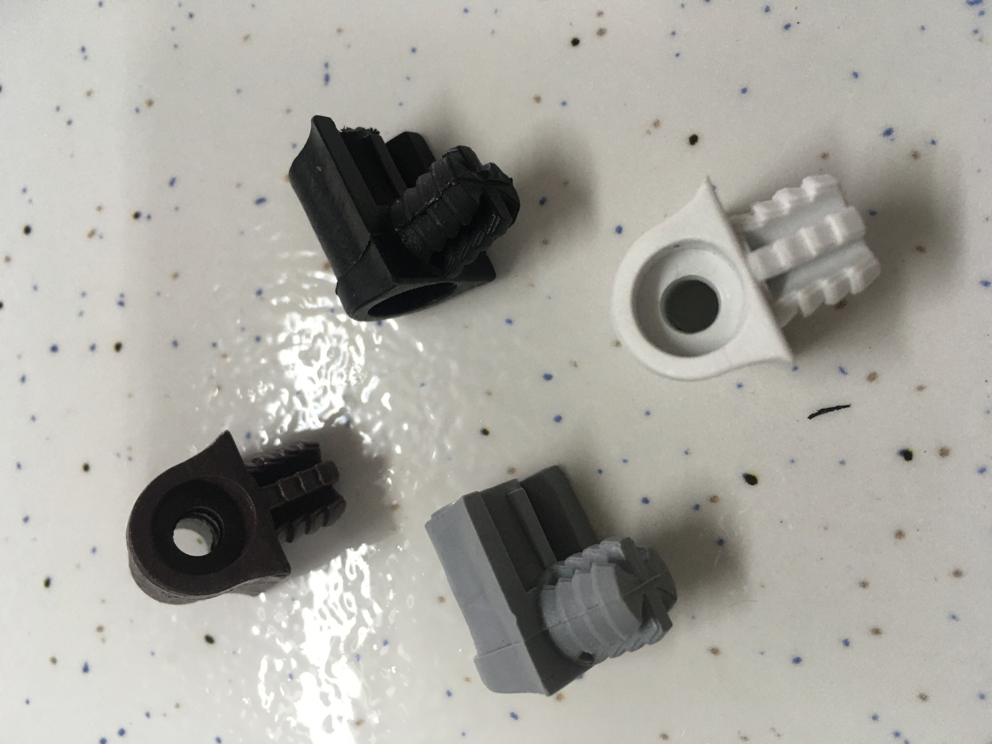 É uma peça utilizada para unir e montar facilmente prateleiras, gavetas e outras mobílias pequenas. Conta, portanto, com um furo para parafuso com rebaixo para apoio da cabeça daquele e um encaixe cilíndrico macho com rosca plana para apoio do trapézio em si na peça que fará o suporte do conjunto. É produzido em polipropileno (PP), o que garante resistência e tenacidade. Possui ampla matiz de cores.